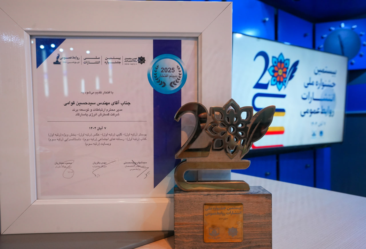 مدیریت ارتباطات، برند و مسئولیت اجتماعی گروه انرژی پاسارگاد با کسب رتبههای برتر در ۸ بخش از یازده بخش اصلی جشنواره، دیپلم افتخار بیستمین جشنواره ملی انتشارات روابط عمومی را دریافت کرد.