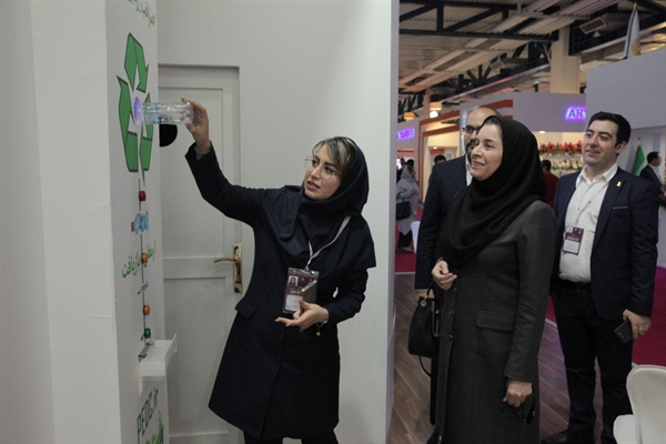 دریافت بطری های آب معدنی و تحویل خودکار سبز(بازیافتی) به مخاطبین نمایشگاه؛
