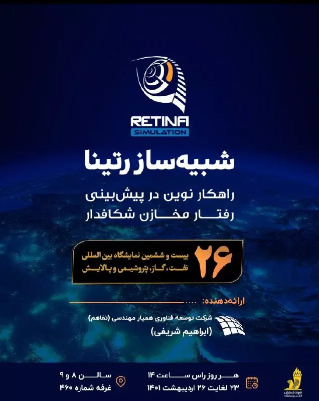 گارگاه آموزشی شرکت تفاهم با عنوان ارائه شبیه ساز رتینا (راهکار نوین در پیش بینی رفتار مخازن شکافدار) از تاریخ 23 الی 26 اردیبهشت ماه راس ساعت 14 در غرفه گروه گسترش انرژی پاسارگاد در نمایشگاه بین المللی نفت، گاز، پالایش و پتروشیمی برگزار می گردد.